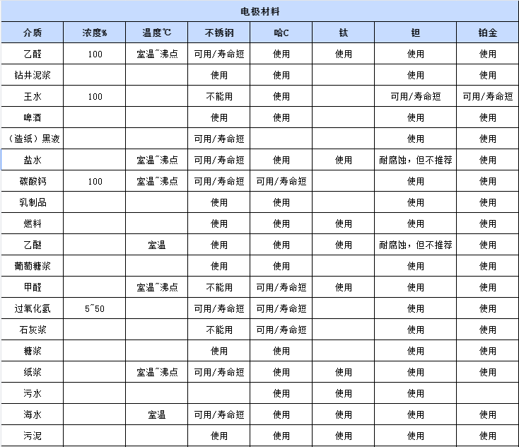×îºó£¬ÔÚ¸ø´ó¼Ò·ÖÏíÏÂһЩ³£¼ûµÄ½éÖÊ£¬µçÁ÷Á÷Á¿¼Æµç¼«²ÄÖÊÌôÑ¡ÏàÓ¦²ÎÊý£º